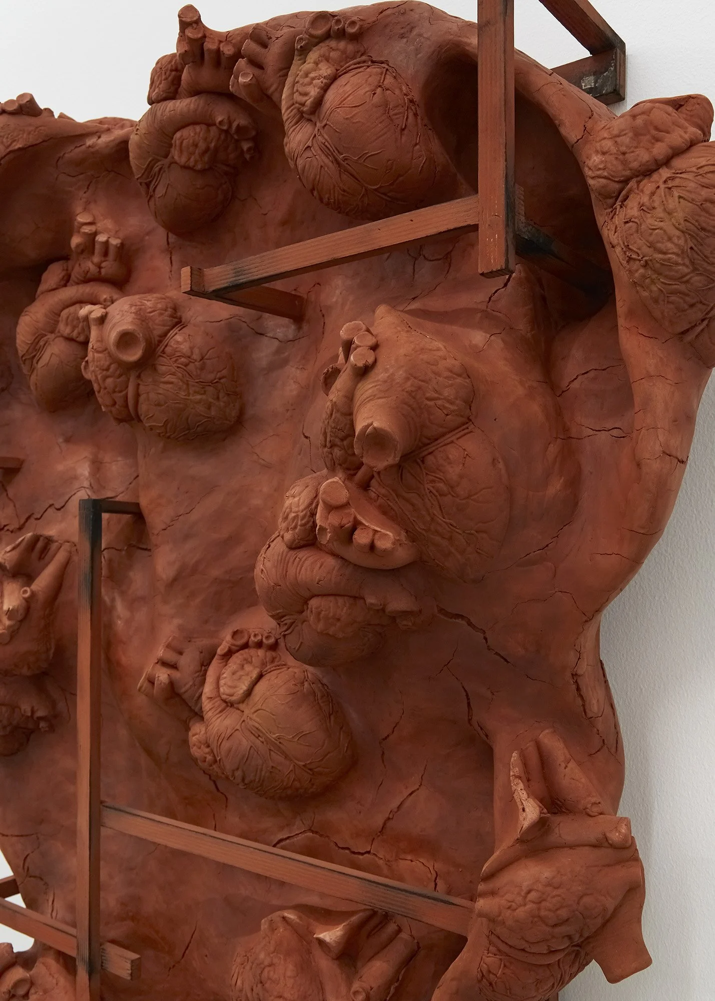 For Baily, the act of making is a form of cathartic cartography. Embracing both historical and contemporary casting processes, Baily’s meticulous interment and patient excavation of biological forms produce works which hold entropy still, through which we might discover something new of time’s undulations. Made whilst navigating heartbreak, the metaphorical dissection in ‘Rest Now My Melancholic Heart’ became a means for the artist to meet herself. The personal imbues the material in this work, exploring the echoes between the underworld and the human heart. What surfaces invites contemplation on both a human and anthropocentric scale; a ‘terra incognita’ with an elusive familiarity.